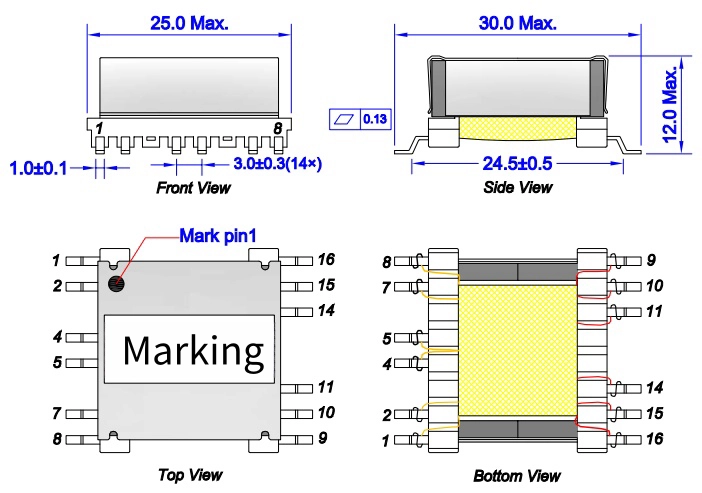 EFD20 Flyback Transformatör, LED sürücüler, pil şarj cihazları ve izole DC-DC dönüştürücüler için ideal olan yüksek frekanslı güç dönüşümü için kompakt ve verimli bir çözümdür. Düşük profilli ferrit çekirdek tasarımı, zorlu uygulamalarda mükemmel performans sunarken alanı optimize eder.